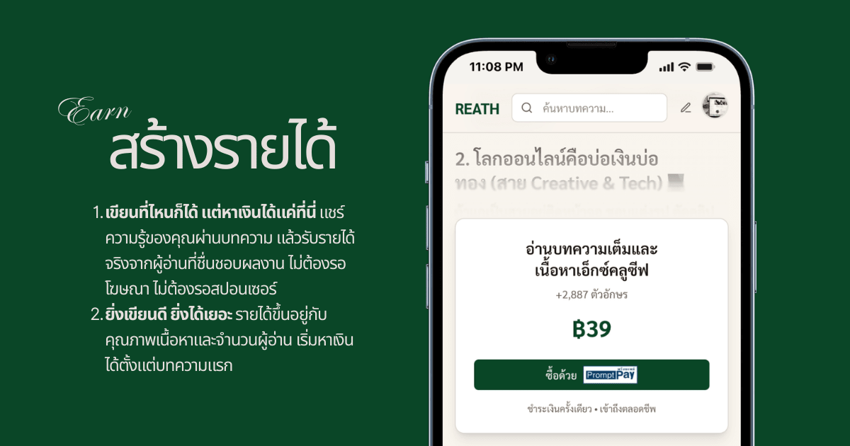 หารายได้จากบทความ — ตั้งราคาบทความได้ ผู้อ่านจ่ายเงินซื้อผ่าน PromptPay ไม่ต้องรอโฆษณาหรือสปอนเซอร์
